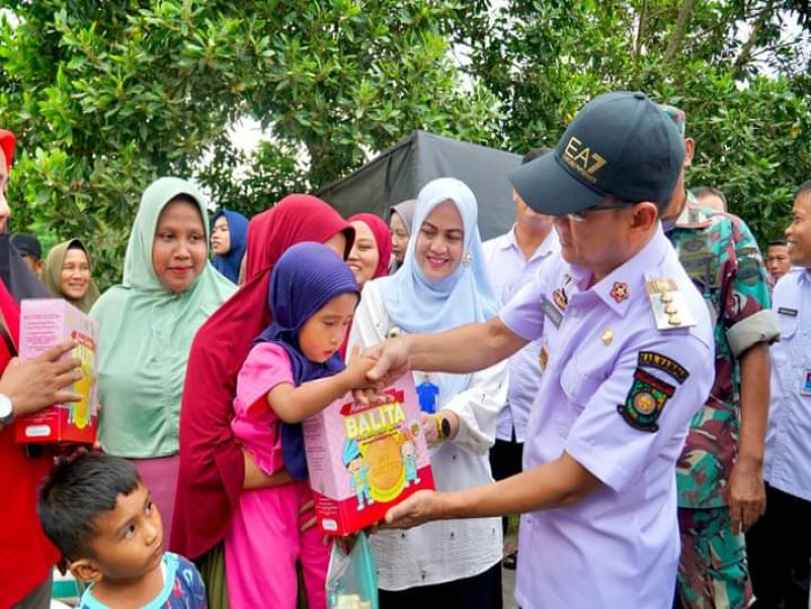 Kampar Utara - Peninjauan korban banjir sekaligus menyerahkan secara simbolis bantuan sembako dan makanan tambahan untuk balita dan ibu hamil di Dusun I Toluok Desa Kampung Panjang Kecamatan Kampar Utara, Rabu 03/01/2023