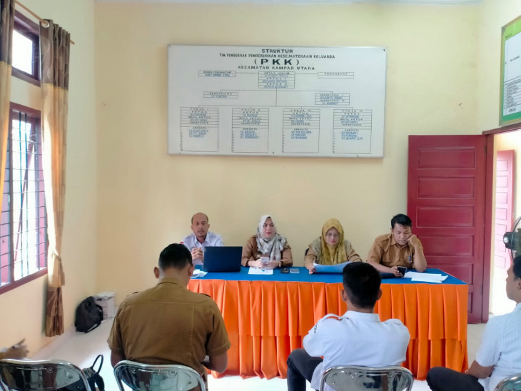 Camat Kampar Utara Riska Jonita Eka Putri, S.STP, M.Si Pimpin Rapat Percepatan Evaluasi Rancangan APBDes dan RKPDesa sesuai amanat Perbup Nomor 27 Tahun 2019 di Aula Kantor Camat Kampar Utara, Selasa (27/12/2022)