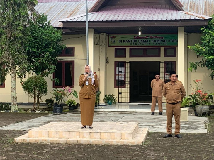 Camat Kampar Utara Riska Jonita Eka Putri, S.STP, M.Si, Pimpin Apel Gabungan, Ajak ASN/THL Tingkatkan Disiplin.