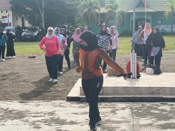 Camat Kampar Utara Riska Jonita Eka Putri, S.STP, M.Si laksanakan senam sehat di halaman Kantor Camat
