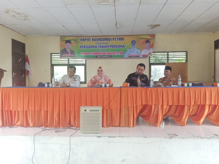 Camat Kampar Utara Riska Jonita Eka Putri, S.STP, M.Si Rapat koordinasi petani dalam rangka persiapan tanam perdana bersama Ustad Dr. Syahrul Aidi Maazat, Lc. MA di aula Kantor Camat