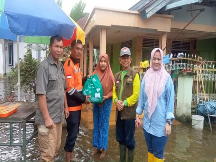 Camat Kampar Utara Riska Jonita Eka Putri, S.STP, M.Si dampingi Baznaz Kabupaten Kampar ke lokasi Banjir untuk pendistribusian sembako.